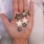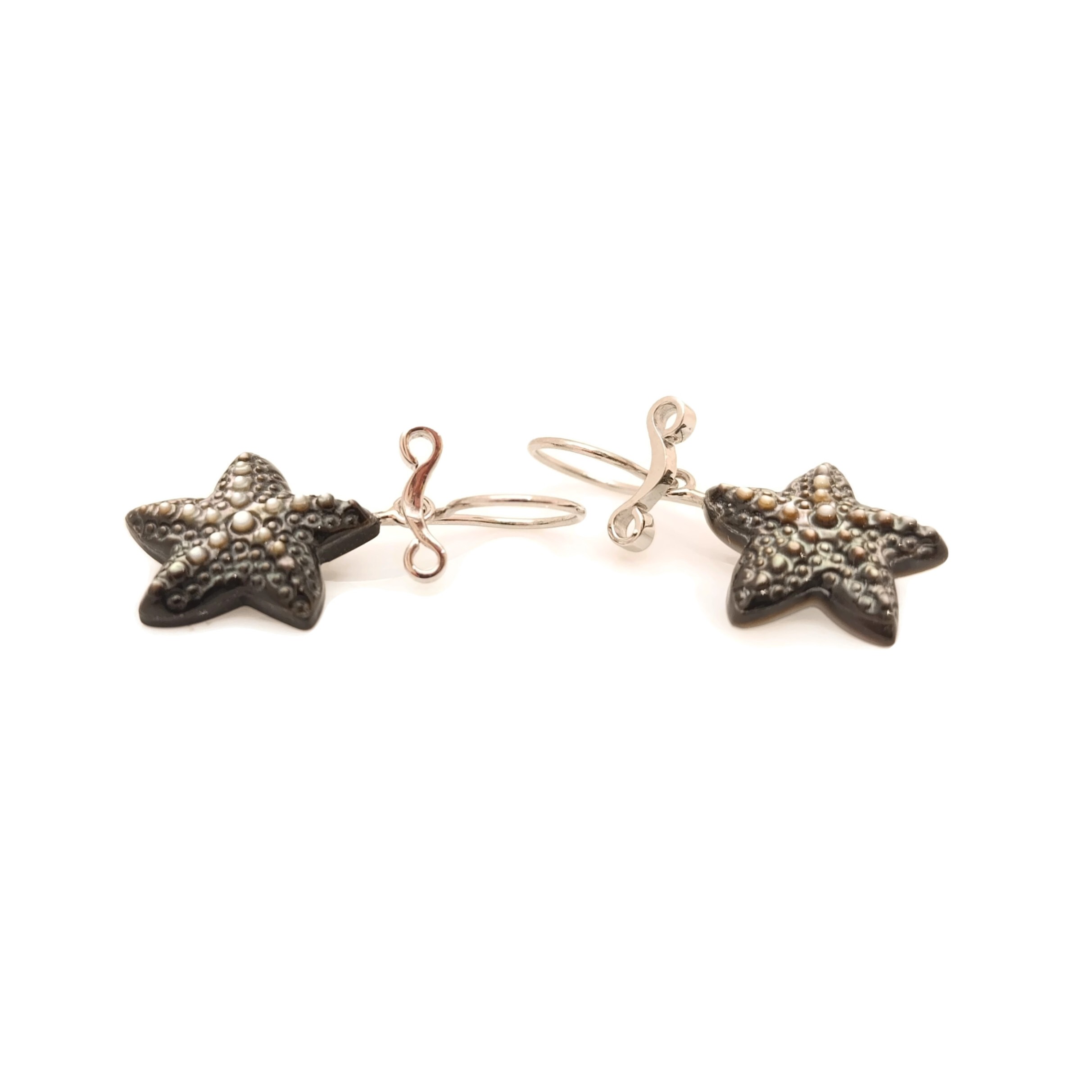Zeesterren van 25 mm – eveneens in zwart of wit parelmoer – €210 per paar.